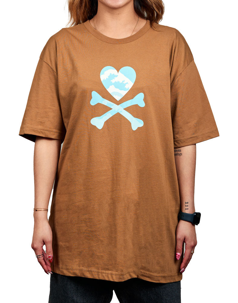 - Heart and cross bones graphic printed on the front and upper back