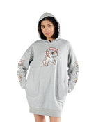 - Women’s fleece pullover hoodie dress in light heather grey